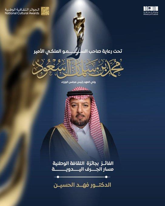 17 Sep نُهنئ سعادة الدكتور فهد الحسين بمناسبة فوزه بمسار الحِرَف اليدوية ضمن #الجوائز_الثقافية_الوطنية تقديرًا لمسيرته الممتدة لأكثر من ثلاثين عامًا من العطاء ✨ المزيد